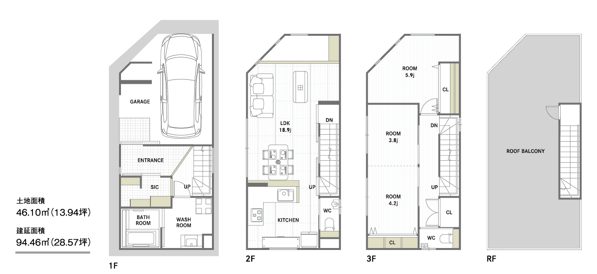 | 延床面積 | 94.46㎡(28.57坪) |