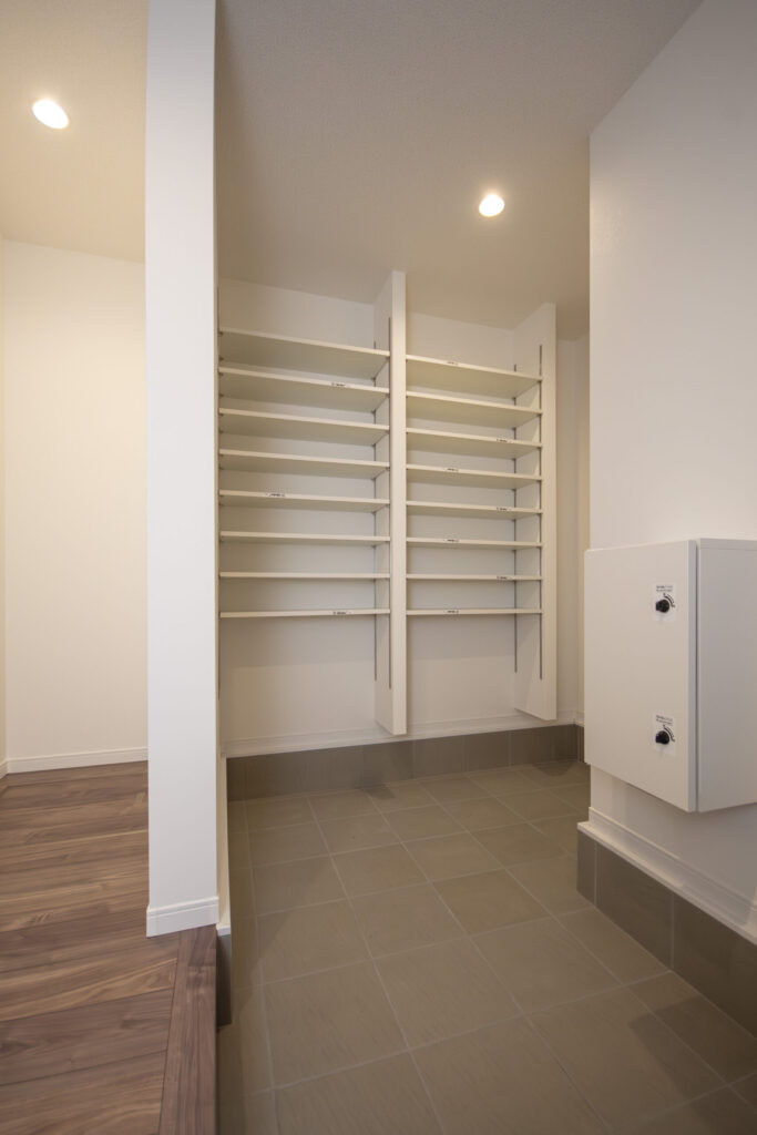 1階エントランス部分にも健康面を配慮した設計が備わっています。玄関フロアに「アレルピュア」というタイルを使用し、外からの花粉の影響を受けやすい玄関の環境アレルゲンを抑制します。機能的にもこだわり、シューズインクローゼットを設けるなど、全体的にゆとりのある広々としたスペースをとっています。