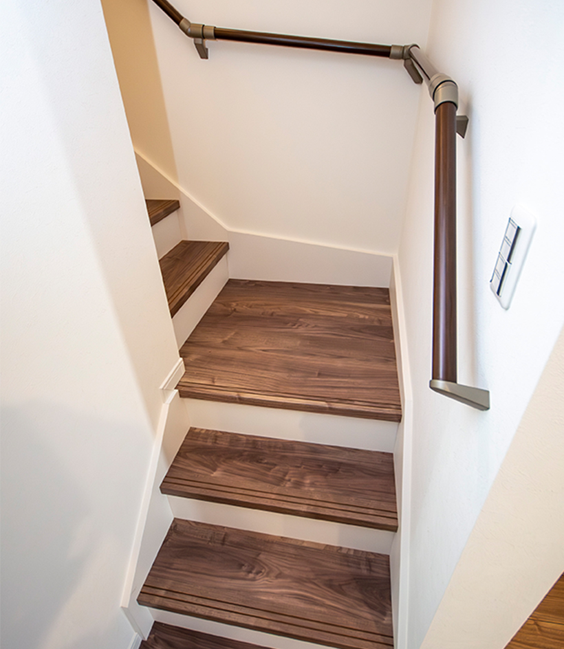 階段を上がってすぐの場所に手洗い場を設けました。外出から帰ってきた時の手洗いを習慣にできます。