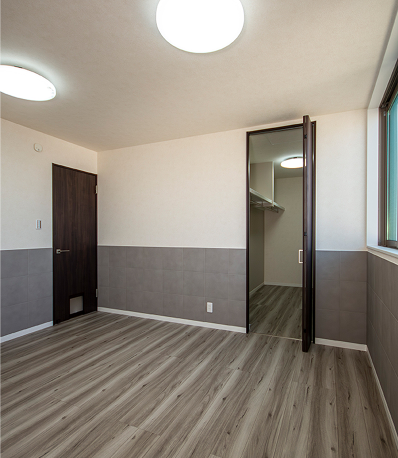 3階の居室2部屋は、壁の下半分を「アレルピュア」のタイル張りにした特徴的なデザインで、環境アレルゲンを抑制する効果があります。また将来的に、動物と住む目的の小さな部屋も設けています。