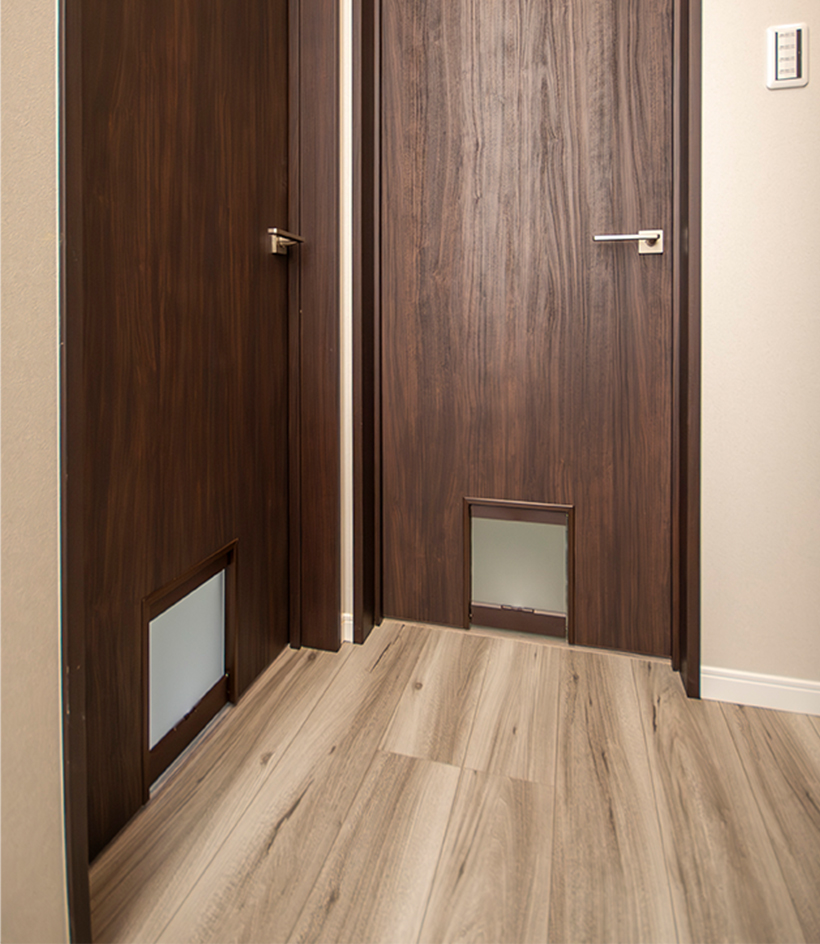 居室の扉には、猫などの小動物が出入りできる専用の扉を設けています。