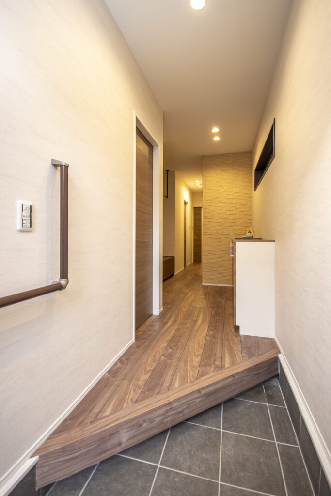 エントランスは段差を低くしたり、手すりを設置するなど、日々使いやすいように設計しました。
