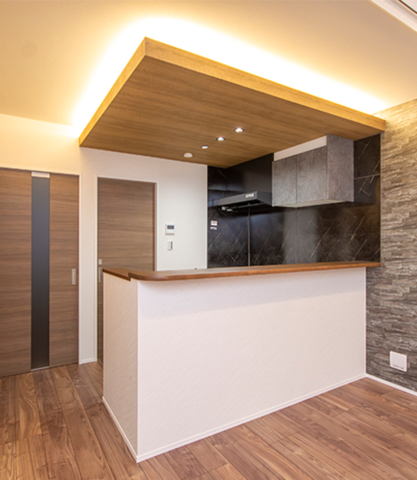 M様は住み慣れた土地に建つ旧家を建て替えられました。建て替えるに当たり極力段差を少なくしたり、手すりを新たに取り付けるなど、日々使いやすい工夫を随所に取り入れました。また、床暖房や断熱性能を上げることで、広い空間を作りながらも、空調が効きやすい快適な住まいに生まれ変わりました。
